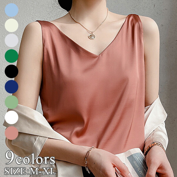 Vネック サテン ノースリーブ カットソー オフィス きれいめ トップス レディースレディースファッション Tシャツ フェミニン