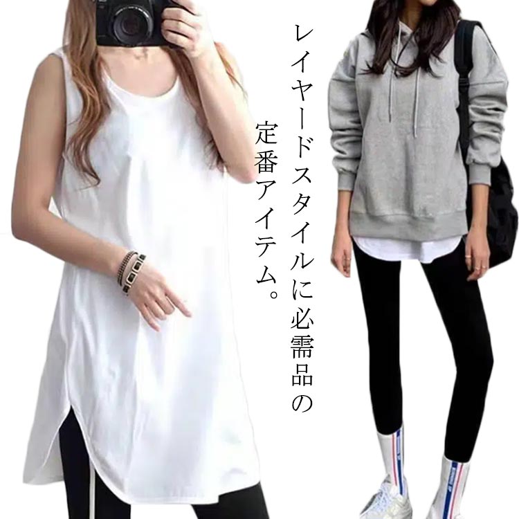 レイヤードタンクトップ ノースリーブ チュニック レイヤード インナー 夏 タンクトップ レディース 重ね着 袖なし ラウンド チュニックインナー 2タイプ 角裾 スクエア カットソー 丸裾