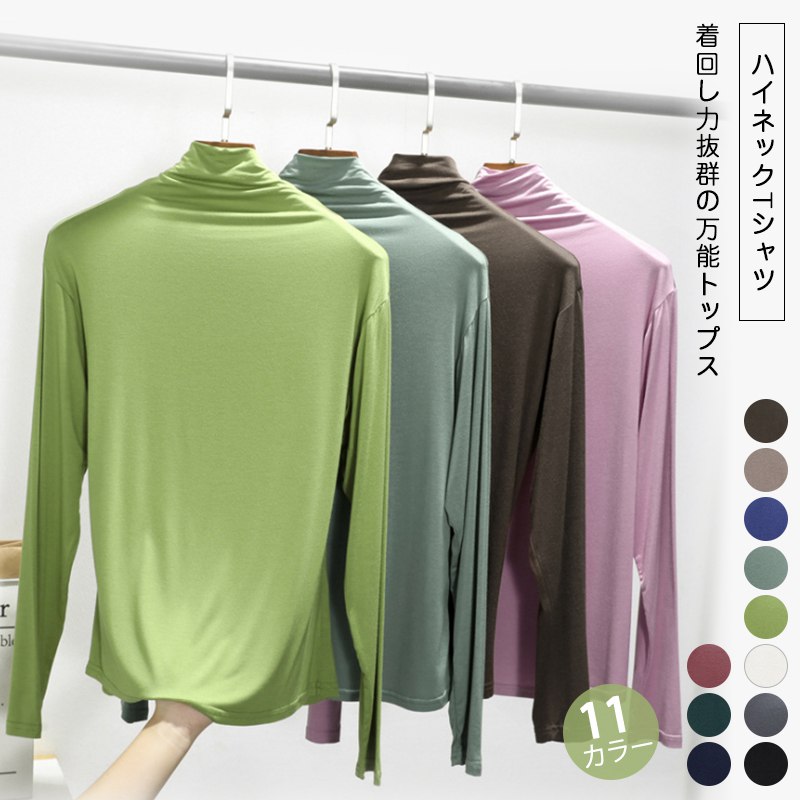 必携シンプル、毎日着たい肌触り一枚で美人魅せ♪【送料無料】レーヨンストレッチとろみメロウ仕立て無地モダールシャツ 長袖シャツインナーシャツ タートルネックシャツ