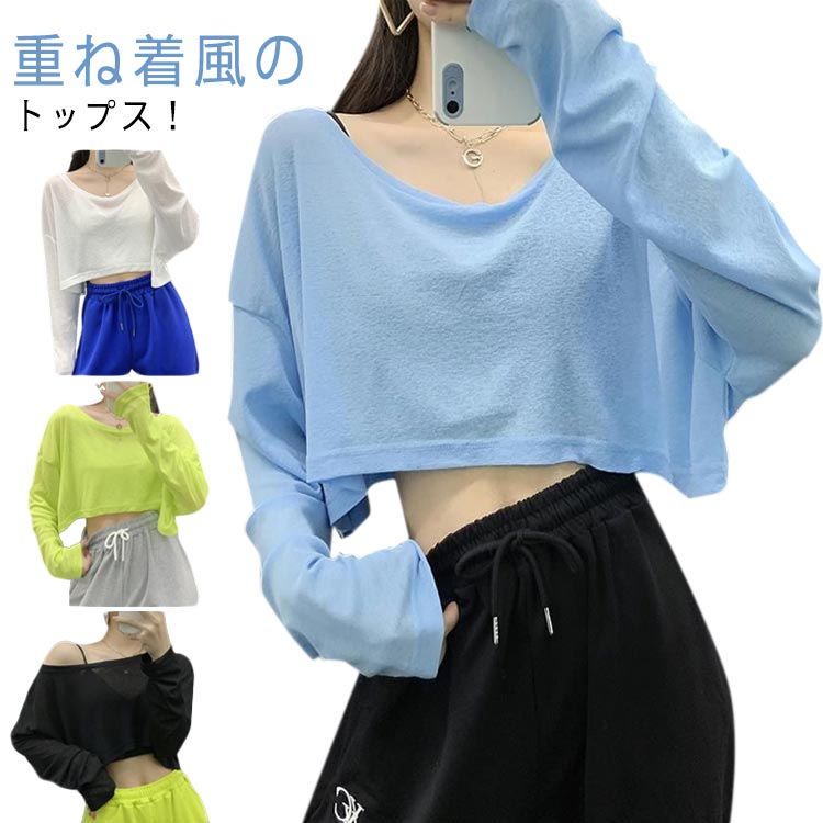 tシャツ 長袖 ショート丈 春夏 長袖tシャツ ミニ丈 メッシュ 韓国風 へそ出し トップス ヒップホップ Tシャツ レディース シアートップス 蒸れない 韓国 透け カットソー