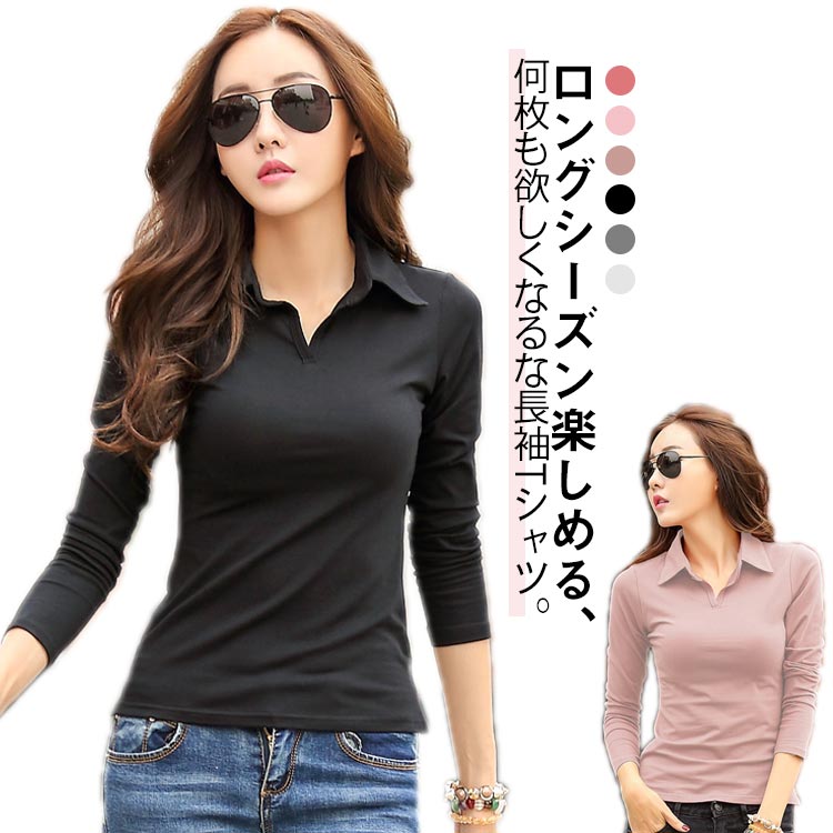 シャツ ポロシャツ 長袖 シャツ カットソー レディース 春 秋 冬 ポロシャツ