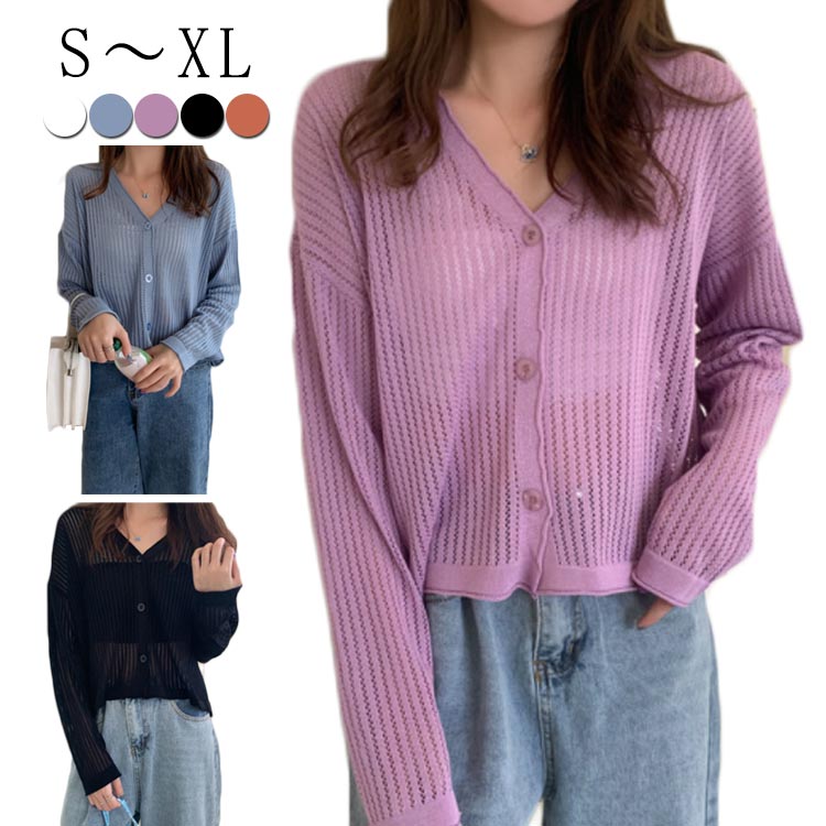 ~ 開襟 サマーカーディガン 透け感 冷房 紫外線対策 薄手 春夏