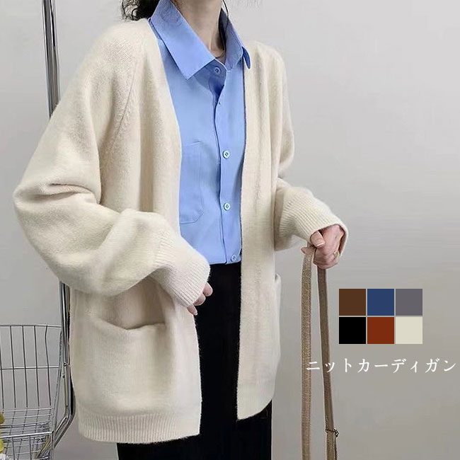 ニットカーディガン モコモコ ふわふわ 柔らかい セーター 重ね着 全開