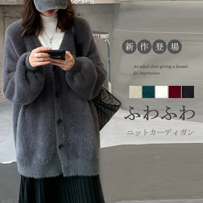 カーディガン ニット Vネック ジャケット レディース シャギーニット トップス ニットコート フェザーカーディガン ニットカーデ ゆるニット 体型カバー プルオーバー あったか 防寒 春 ふわふわ