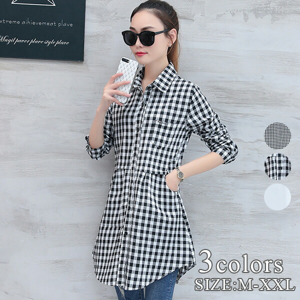 3 きれいめ カジュアル チュニック ブラウス シャツ 七分袖 チェック 無地 ワンピース レディース