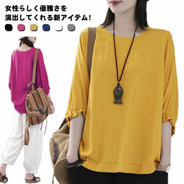 ブラウス トップス レディース 七分袖 七分袖ブラウス カジュアル 春 夏 秋 シャツ Tシャツ ゆったり おしゃれ ゆるシルエット エレガント ナチュラル 通勤 オフィ 柔らか
