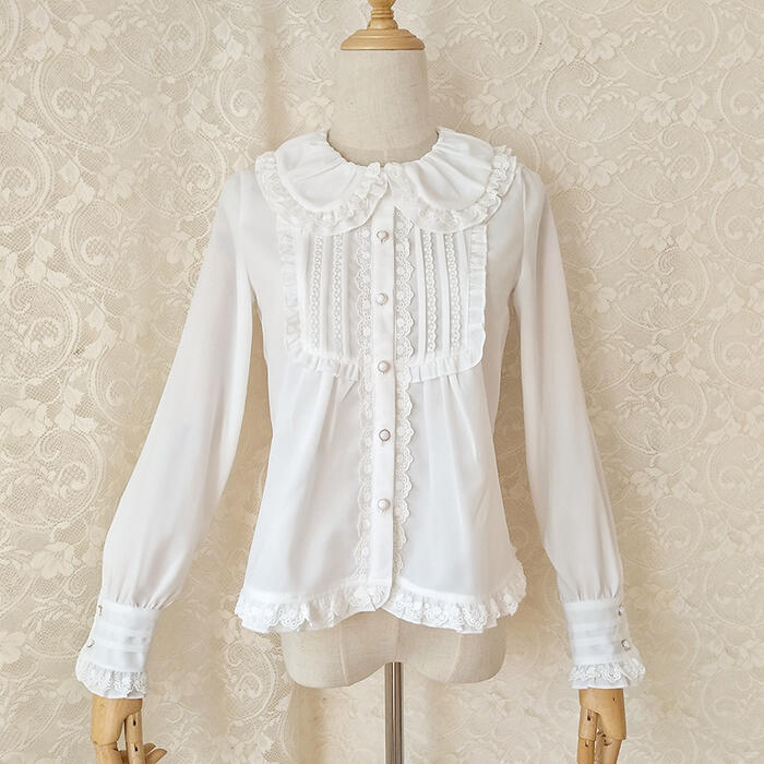ロリータ 長袖 ブラウス レディース コスチューム コスプレ 白黒 レトロ クラシカル クラロリ Lolita ロリィタ ハロウィン ゆめかわいい 可愛い ウェディング フェミニン シフォ パーティー