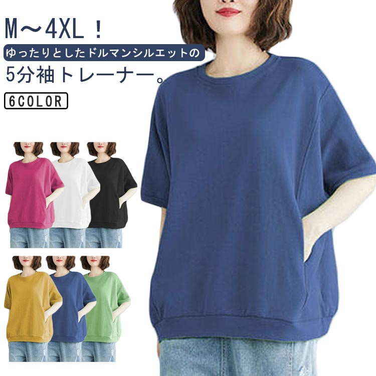 トレーナー レディース 春 おしゃれ 大きいサイズ 大人 プルオーバー トップス 半袖 tシャツ 5分丈 ビッグシルエット シンプル 半袖tシャツ ラウンドネック カジュアル