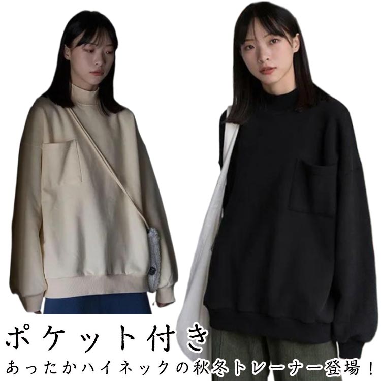 ~2 ハイネックトレーナー 重ね着 秋冬 重ね着 ポケット付き おしゃれ