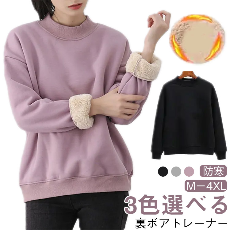 暖かい スウェット レディース 裏ボア 厚手 あったか 裏起毛 トレーナー プルオーバー 防寒 長袖 トップス ボア 秋冬 クルーネック ふわふわ 部屋着 アウター シンプ パーカー