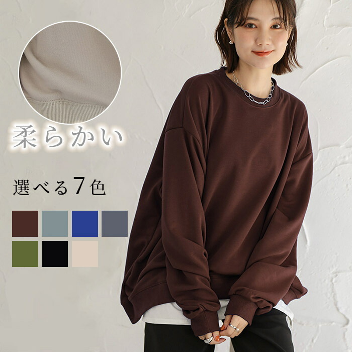 ビッグシルエット お尻が隠れる ルームウェア 春 大きいサイズ スエットトレーナー 春スウェット 部屋着