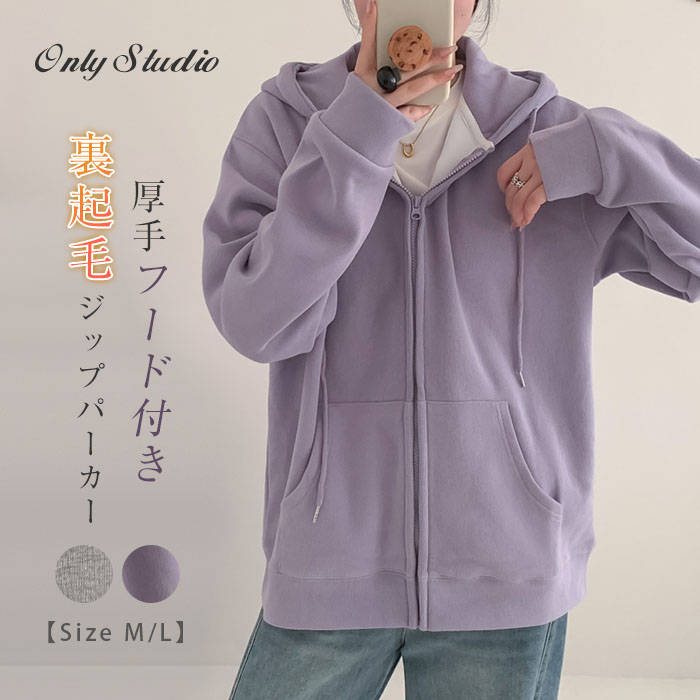 ジップパーカー 厚手 レディース 裏起毛 裏ボア 微起毛 パーカー ジップアップパーカー カーディガン ゆったり 防寒 アウター 暖か カジュアル ポケット