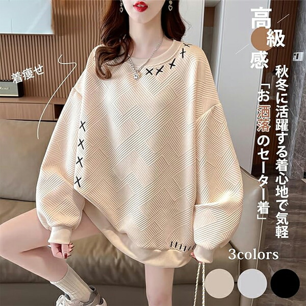 トレーナー レディース パーカー スウェット 長袖 丸首 プルオーバー トップス 刺繍 ゆったり 大きいサイズ シンプル カジュアル 無地 韓国 体型カバー 春 秋 冬 着痩せ