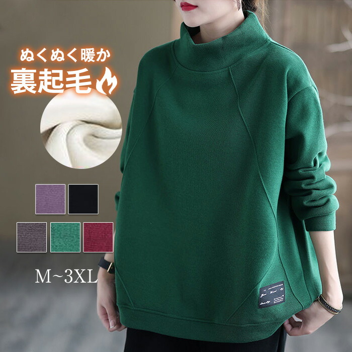 トレーナー パーカー レディース 裏起毛 無地 長袖 トップス スウェット おしゃれ 冬 暖かい あったか ハイネック 秋 ドロップショルダー 防寒 シンプル 大きいサイズ ビッグシルエ ルームウェア