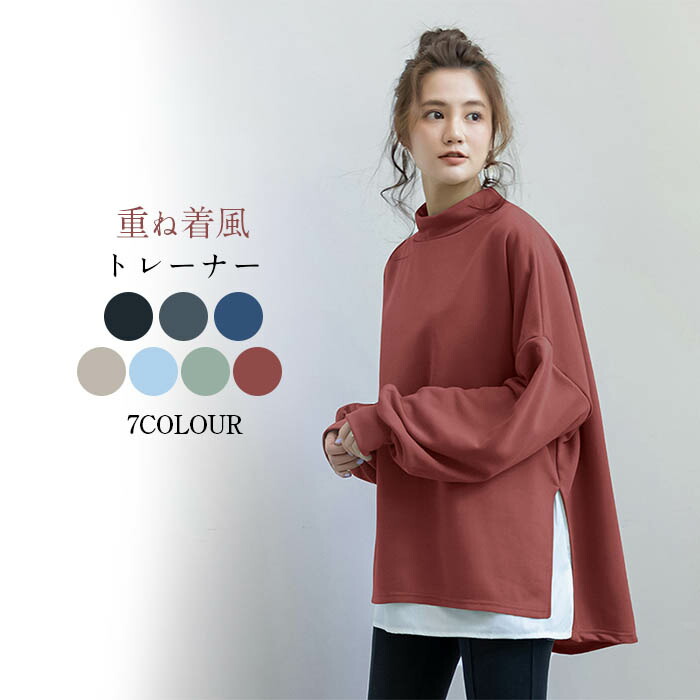 500円OFF トレーナー スウェット プルオーバー 新作 レディース フェイクレイヤード 長袖 大きいサイズ 秋冬 トップス ゆったり 韓国風 オーバーサイズ おしゃれ ドルマンス ビッグシルエット