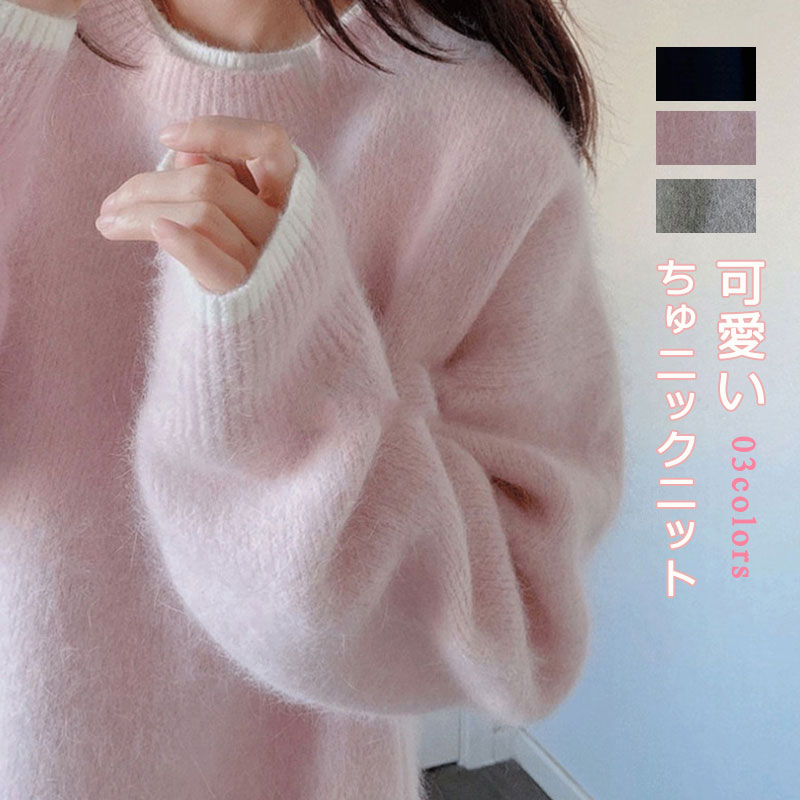 チュニック ニットセーター レディース ニットチュニック 無地 長袖 ロングニット ニットソー プルオーバー カットソー オーバーサイズ 秋冬 柔らかい ニット 切り替え もこもこ 可愛い セーター