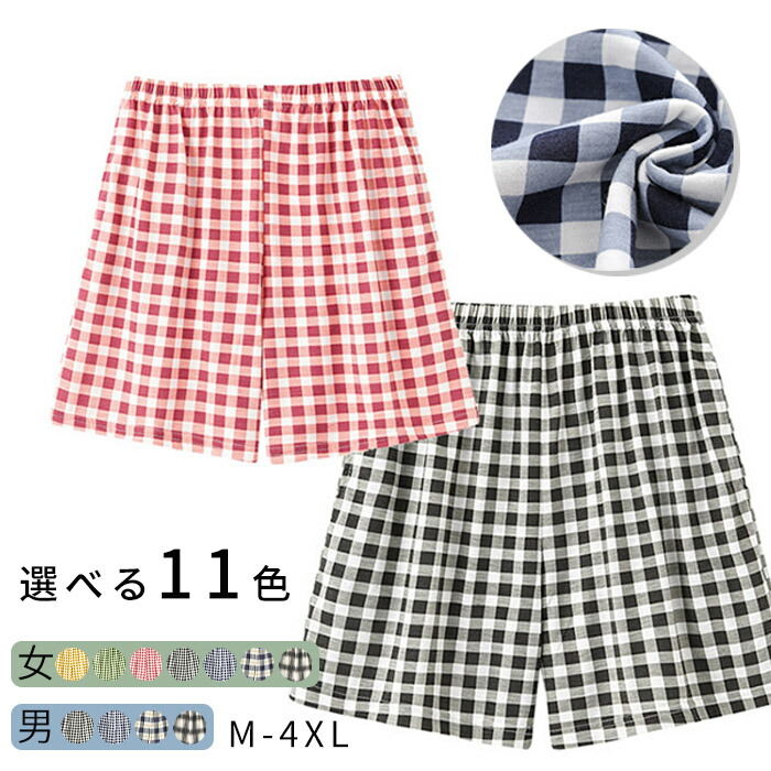 ルームパンツ レディース メンズ ショートパンツ ルームウェア ナイトウェア 短パン ミニ丈 ボトムス 春夏 ズボン ショーパン パジャマ 綿 寝巻き 部屋着 男性用 チェック柄 部屋 女性用