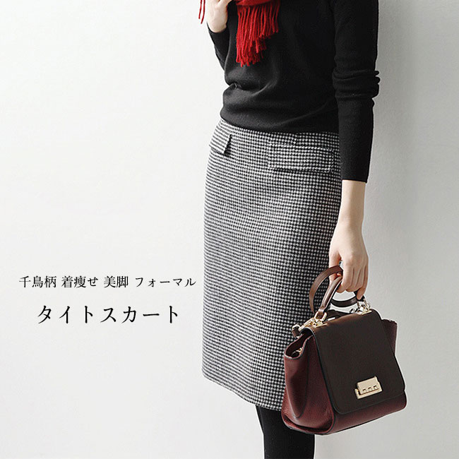 タイトスカート レディース ミディアムスカート 千鳥柄 膝丈 スリット入り 起毛感 ボトムス カジュアル 着 せ エレガント きれいめ おしゃれ フォーマル オフィス 大人 春秋冬 バッグファス 通勤