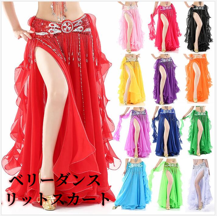 ベリーダンス スカート スリットダンス ステージ衣装 ダンス衣装 アラビアン スリット 華やか ベリーダンスボトムス スリットスカート 美脚 レッスンウェア レディース ロング丈スカート 団体お 無地