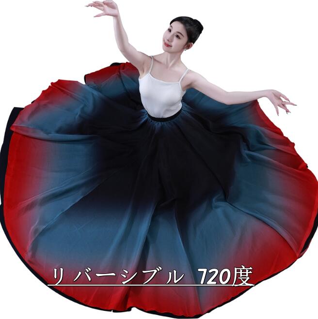 リバーシブル ダンススカート 女性 ダンス衣装 大きい裾 720度 広がるスカート 色スプライス グラデーション スカート 古典ダンス衣装 モダンダンス 大きい裾スカート ひらひら 垂れ 民族風ダンス