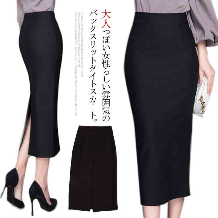 ペンシルスカート ミモレ丈 ロングスカート タイト 無地 ボトムス スカート バックスリットレディースファッション