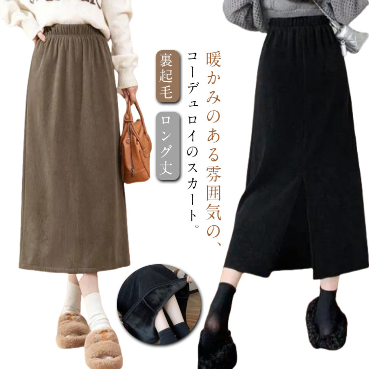 コーデュロイ スカート 秋冬 レディース 無地 マキシスカート タイトスカート ロングスカート 裏起毛スカート コーデュロイスカート スリット あったか 暖かい Aライン スカー 裏起毛