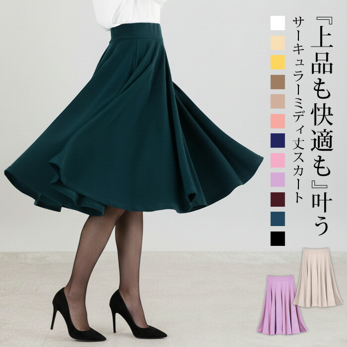 スカート ひざ丈 レディース 秋 冬 秋冬 黒 フレアスカート 膝丈 大人 無地 きれいめ 上品 ミモレ丈 ロング丈 小柄 低身長 高身長 ミディアム丈 オフィス カジュアル サーキュラースカート