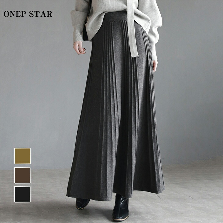 プリーツ加工ハイウエストスカート レディース スカート ロング プリーツ ウエストゴム 着映え シンプル カジュアル きれいめ 秋 冬 春 20代 40代 50代 ワンピスター 30代