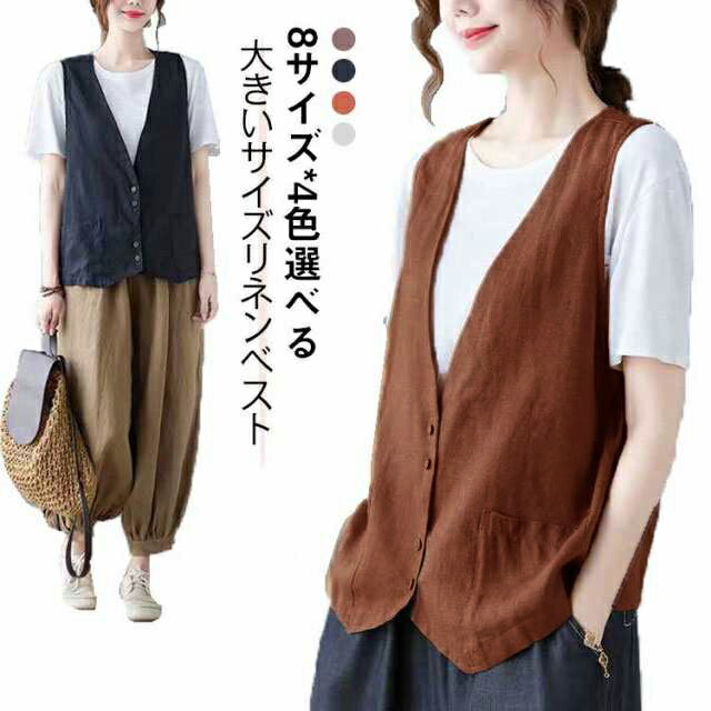 綿麻 ベスト ジレ 春夏 レディース ショート丈 リネンベスト アウター 夏 ノースリーブ 涼感 コットンリネン 前開き レイヤード スポーツ アウトドア レジャー 通気 速乾 お釣り 軽量