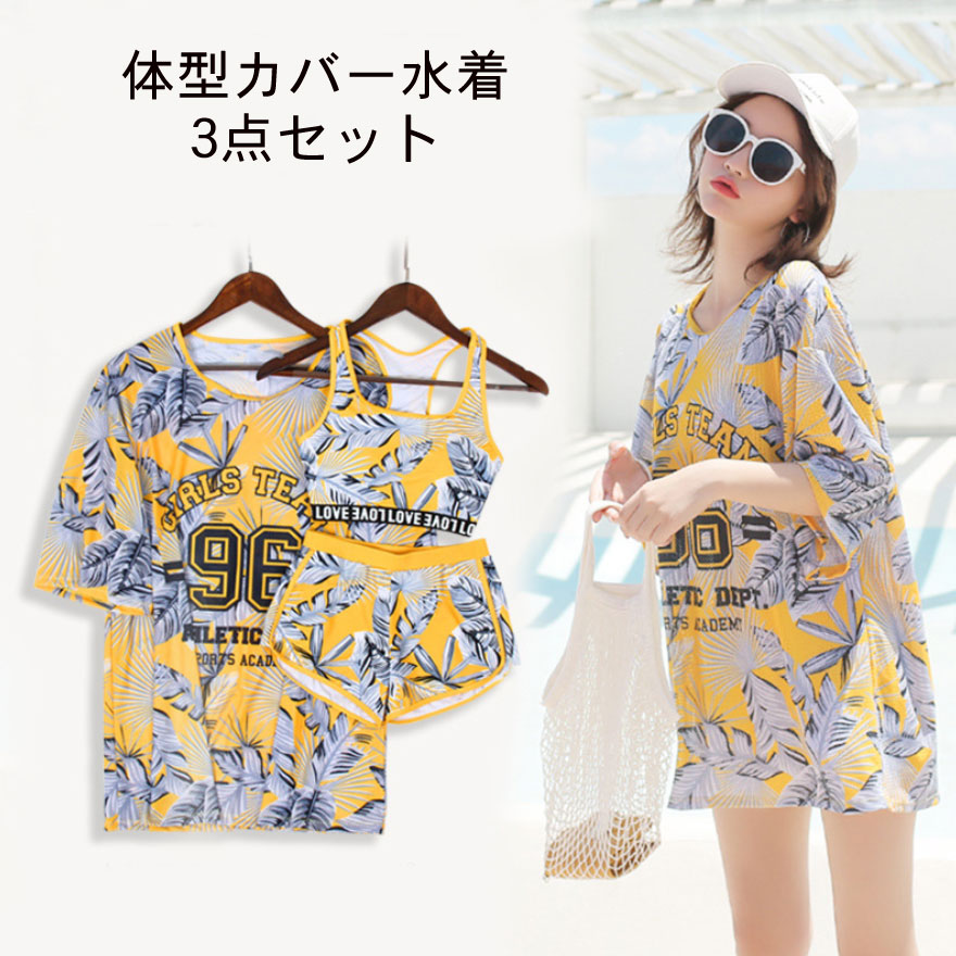 体型カバー 水着 タンキニ レディース タンキニ ビキニ水着 セパレート 3点セット 水着 スポーツ風 露出控えめ