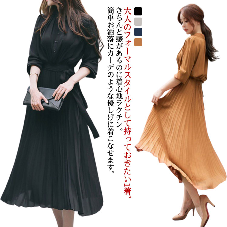 ママ スーツ 入園式 七五三 プリーツ フォーマル ワンピーススーツ 黒