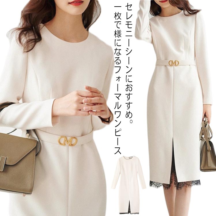 ママスーツ 入学式 ワンピーススーツ 卒業式 卒園式 上品 結婚式 フォーマルスーツ レディース きれいめ 長袖 裾レース 切り替え スリット入り 体型カバー お宮参り 七五三 大人 学校