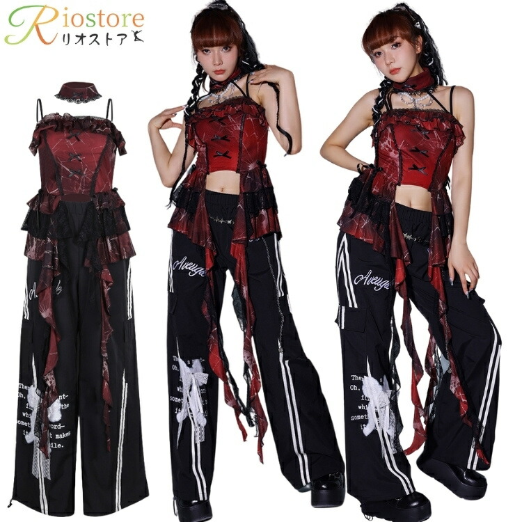 赤 黒 ダンス衣装 k-pop レディース セットアップ 大人 夜店 クラブ バー 舞台 イベント トップス ヘソ出し パンツ アイドル衣装 ジャズ チアダンス 演出服 ヒップホップ JA DSダンス