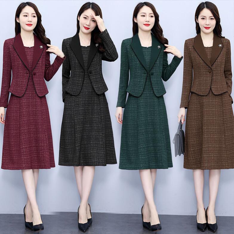 フォーマルスーツ ポケット付き ロングワンピース レディース スーツワンピース セットアップ ジャケット+ワンピース ツイード