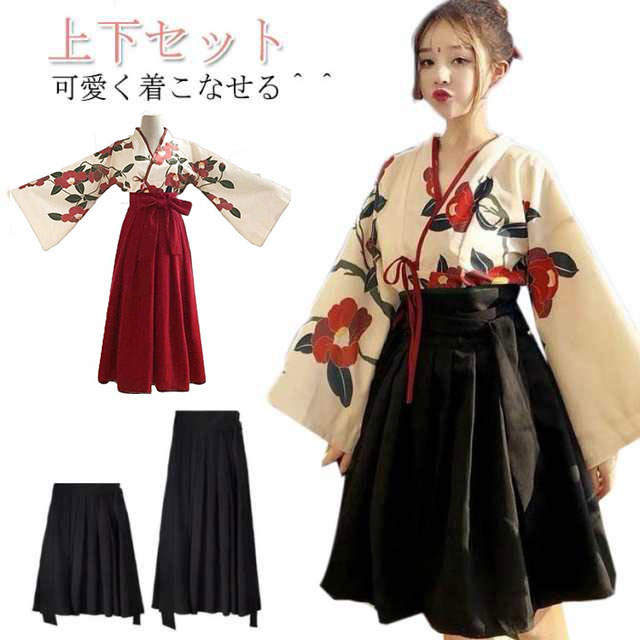 コスプレ 和服 上下セット ハロウィン ロングスカート 衣装 着物 華ロリ 袴セット 仮装 チャイナ服 大正ロマン 中華 ロリータ ショートスカート 卒業式 パーティー 花柄