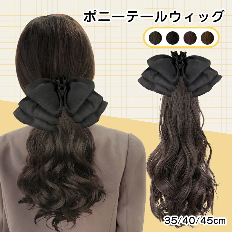 ポニーテール ウィッグ つけ毛 人工毛 レディース リボン 大きなウェーブ 長いカール クリップ ふわふわ キャッチャー ナチュラル エレガント ファッション ふんわり お洒落 増毛 可愛い 簡 大人