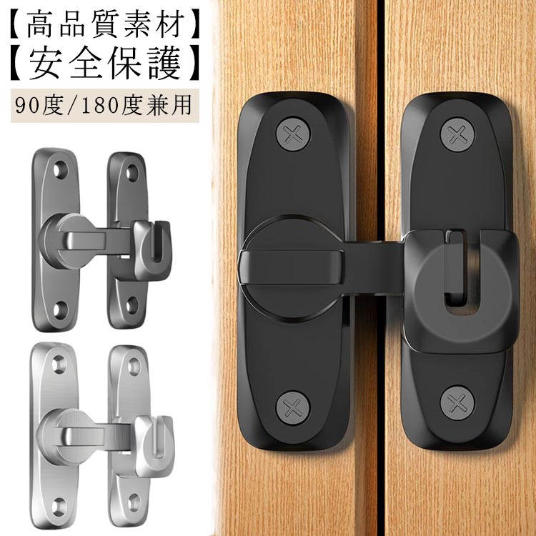 引き戸 鍵 後付け ドアロック 90度/180度 ドアバックル 亜鉛合金 ドア留め金ロック 後付け 回転式 フリップラッチロック スライディングドア 引き戸 鍵 ロック