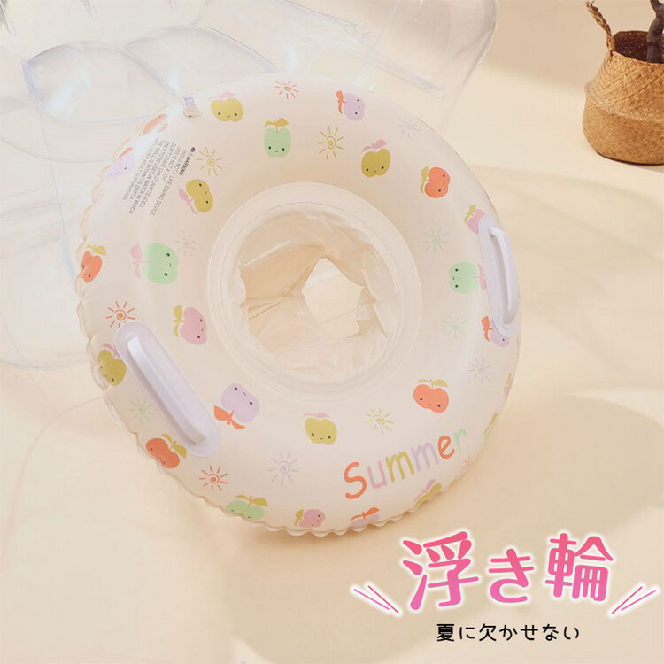 浮き輪 子供用 キッズフロート ベビーフロート リンゴ柄 浮輪 足穴付き 型タイプ 座付き 浮き具 1~4歳 水遊び プール用品 ビーチ