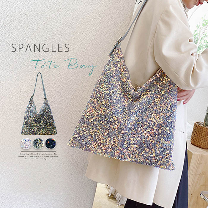 限定SALEスパンコールバッグ トートバッグ レディース 鞄 肩掛け バッグ 大容量 キラキラ 可愛い おしゃれ 華やか お出かけ 派手 個性的 人気 モード シルバー ブラック ブ きれいめ