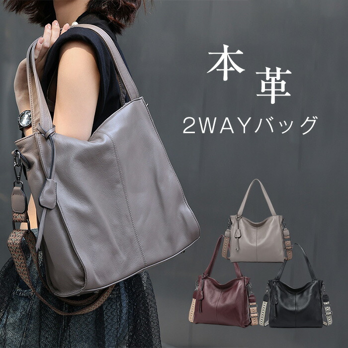 牛本革のレディーストートバッグ ショルダーベルト付きの2仕様