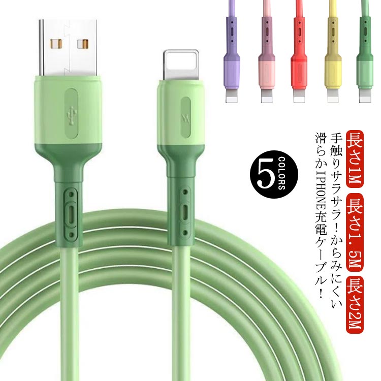 アイフォン用 充電ケーブル 断線に強い 充電コード 高速充電 1.5メートル 1メートル 高耐久 ソフトコード カラフル 無地 2メートル