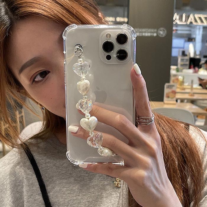 iPhone15ケース iPhone14ケース アイフォン13ケースハート パール リング チェーン ホワイト おしゃれ 春 夏 秋 冬 韓国 携帯ケース アイフォン ケース アイフォ スマートフォン