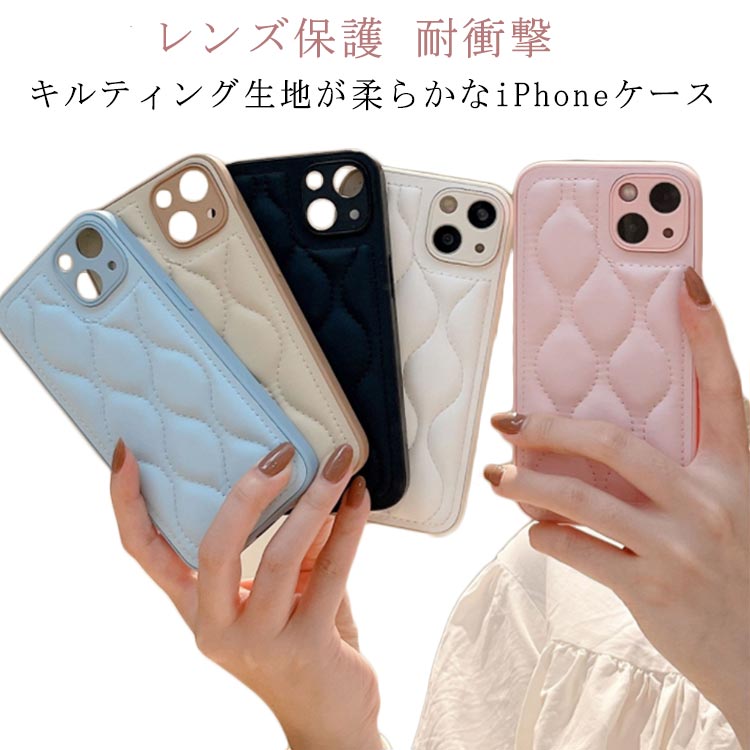 キルティング ケース ケース かわいい 韓国 アイフォン15 アイフォンケース レンズ保護 落下防止 ケース アイフォン14 スマホケース