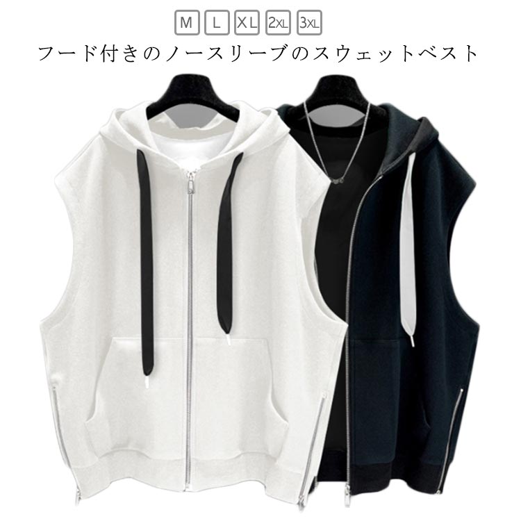 体型カバー メンズ ゆったり スウェットベスト パーカーベスト 大人 レディース ノースリーブパーカー ジップパーカー カットソーベスト トップス ジップアップ スウェット 前開き カジ 大きいサイズ
