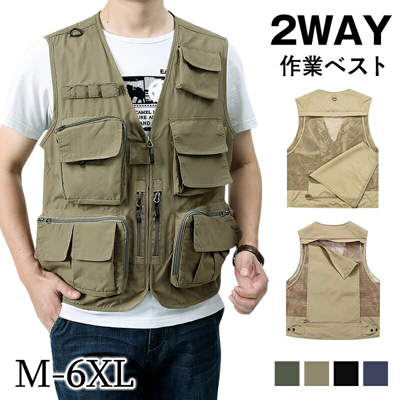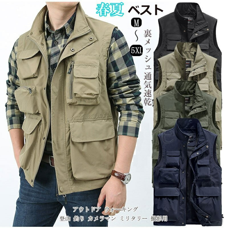 ベスト メンズ 多機能ベスト メッシュベスト アウトドア 速乾 ミリタリー ポケット 大きいサイズ 作業着 カジュアル カメラマン 登山 撮影用ベスト お釣りベスト