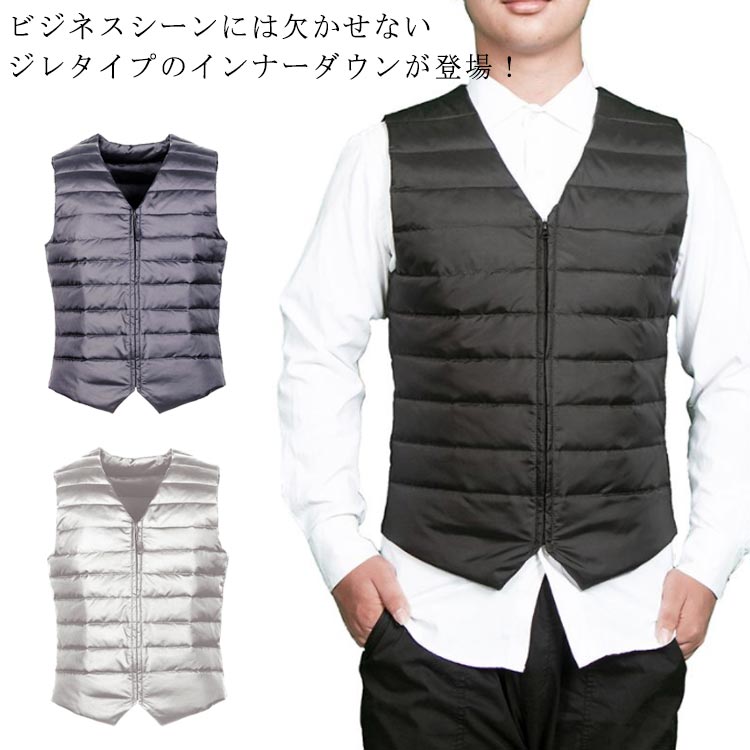 ダウンベスト メンズ インナー Vネック ビジネス スリム 春秋 ライトダウン ファスナー式 薄手 秋冬 春 フォーマル 保温 カジュアル 軽量 防寒