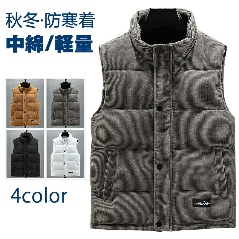 ダウンベスト メンズ レディース ベスト 中綿ベスト フェイクダウン コーデュロイ生地 インナーベスト 中綿入り 着膨れない 軽い 防寒着 チョッキ アウトドア スタンドカラー アウター 大きいサイズ
