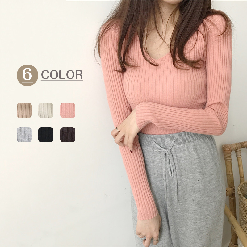 ニット 長袖 リブニット リブセーター レディース セーター インナー Vネック ハイネック プルオーバー トップス カットソー きれいめ おしゃれ 着痩せ 長袖Tシャツ イ かわいい