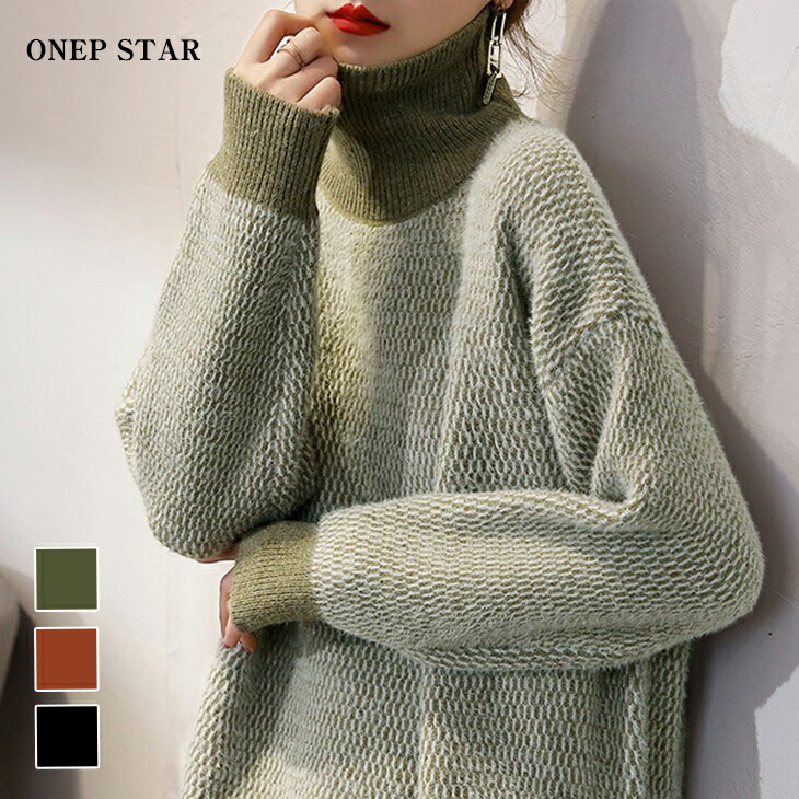 ニット セーター レディース トップス 秋冬 タートルネック ハイネック 長袖 厚手 暖かい ゆったり シンプル デザイン 無地 カットソー ニットウェア リブニット