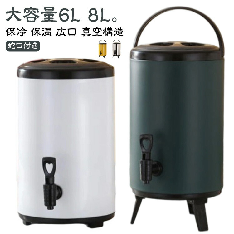 ドリンクサーバー 蛇口付き ステンレス 8L バケツ ウォータータンク 断熱 ウォーターディスペンサー 給水タンク ウォータージャグ 保温 ピッチャー 大容量 ポット 広口 真空構造 キャンプ 6L